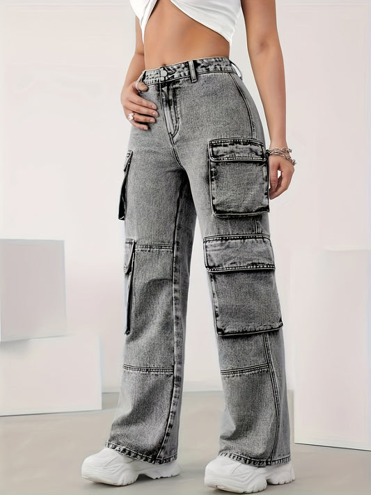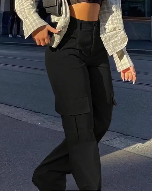 Pantalones vaqueros cargo elegantes de cintura alta para mujer: