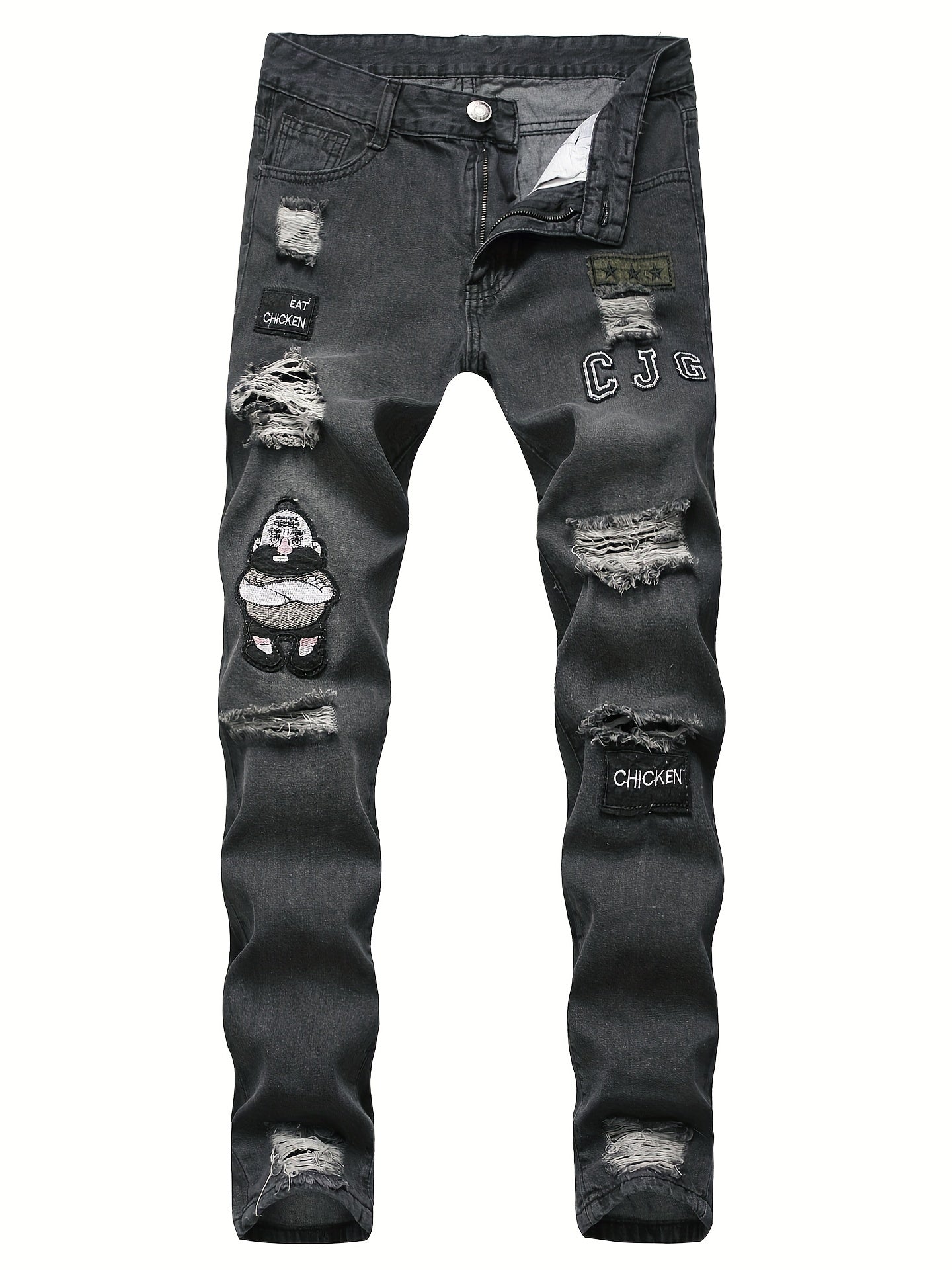 Pantalones vaqueros desgastados y desgastados de mezclilla desgastada blanca a la moda para hombre, pantalones vaqueros desgastados y desgastados de mezclilla blanca ajustados y rotos