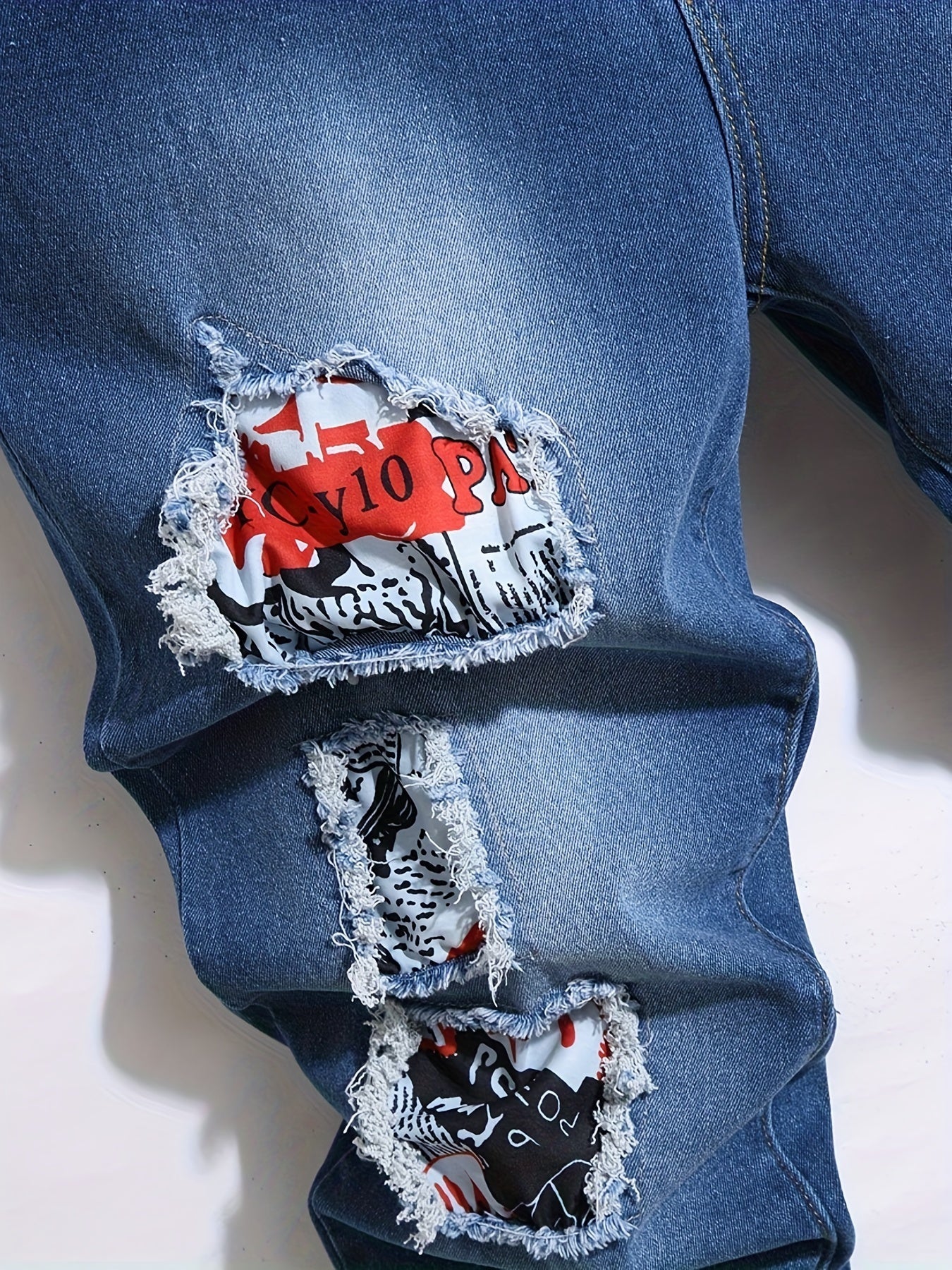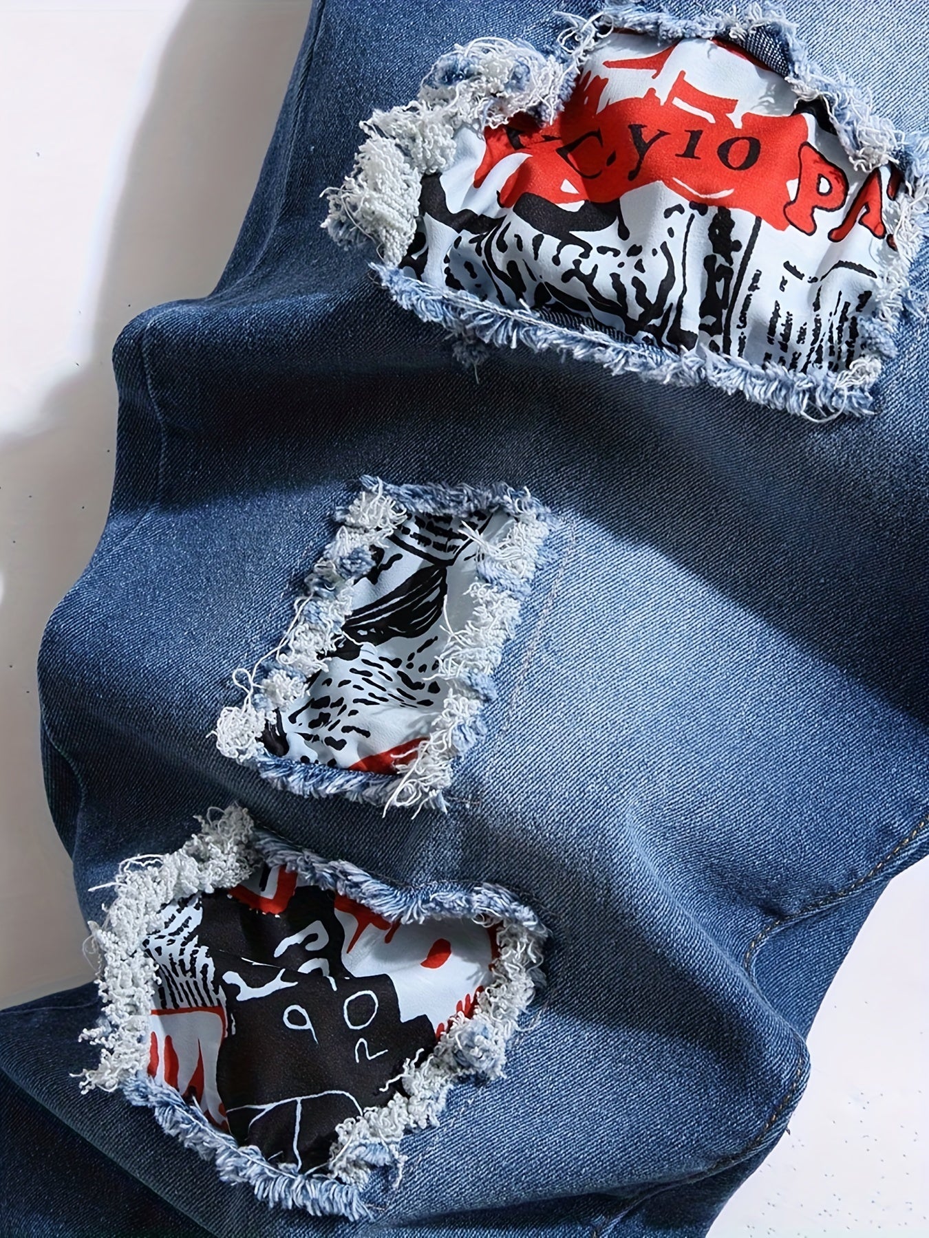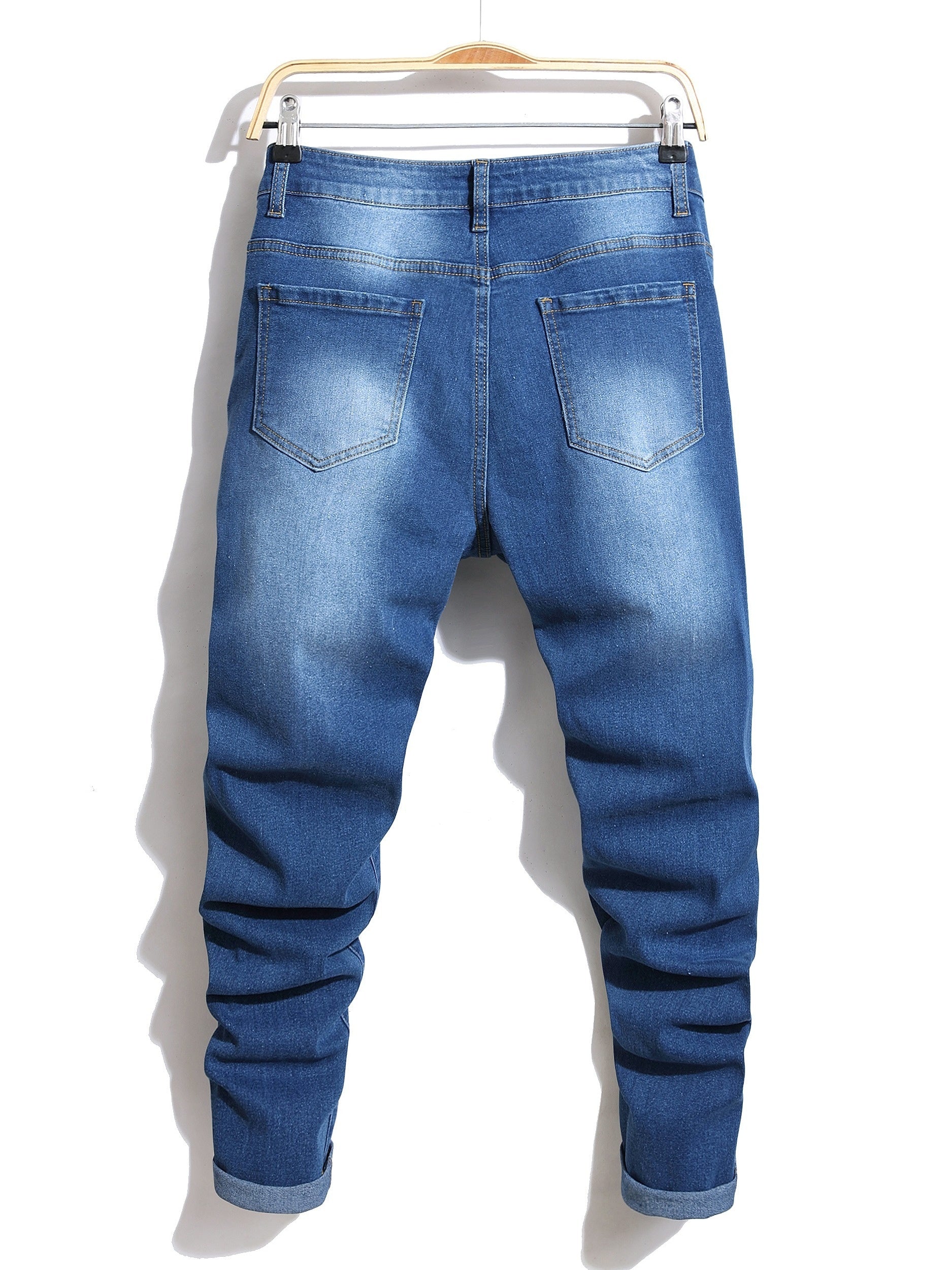 Pantalones vaqueros desgastados y rotos de corte ajustado para hombre, pantalones de mezclilla de estilo urbano versátiles para hombre para todas las estaciones