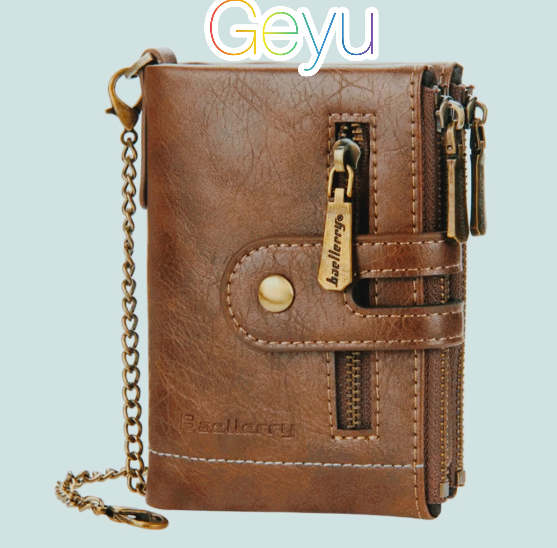 Cartera de cuero RFID vintage para hombre, billetera con doble cremallera, monedero multifunción, tarjetero, monedero, regalo de negocios para hombre