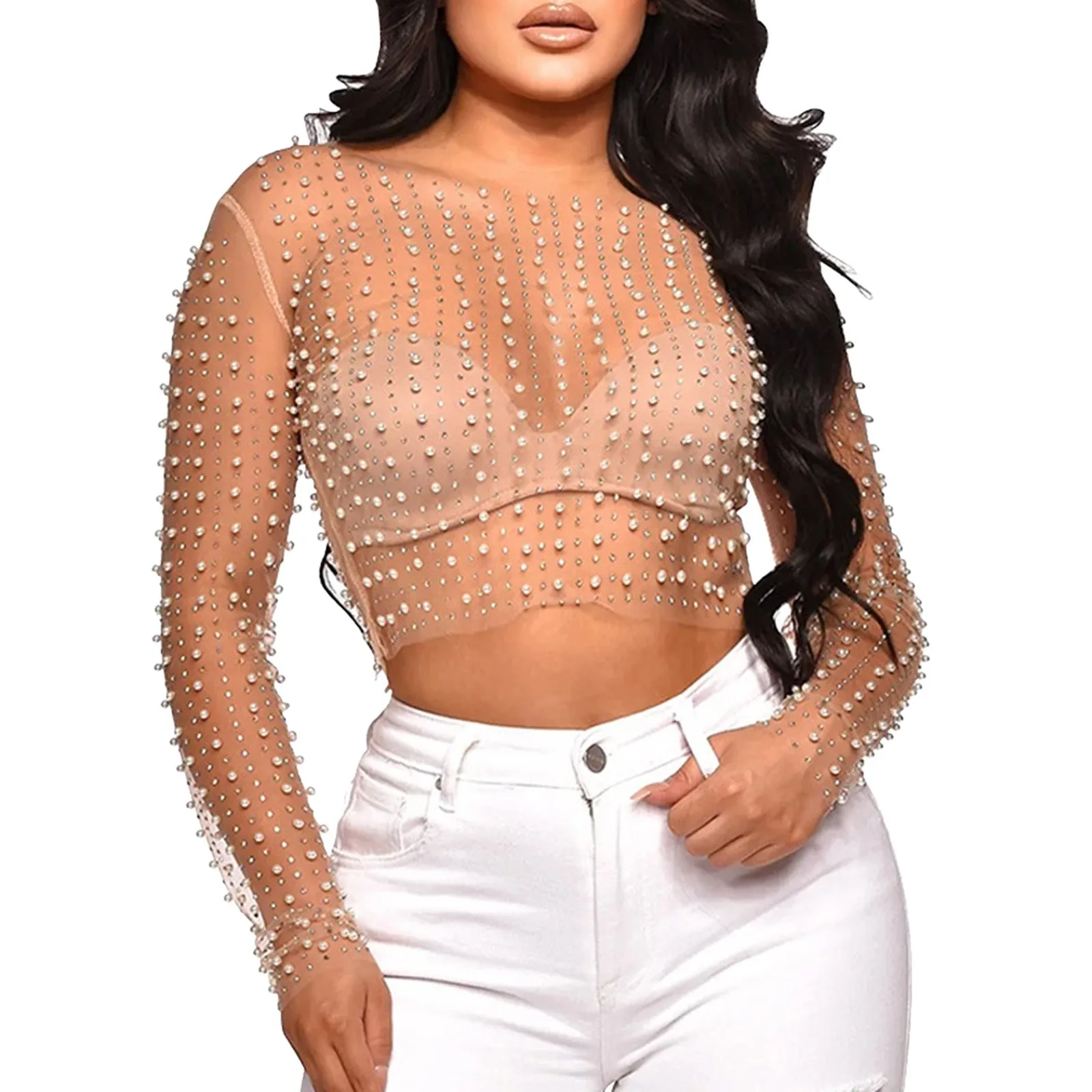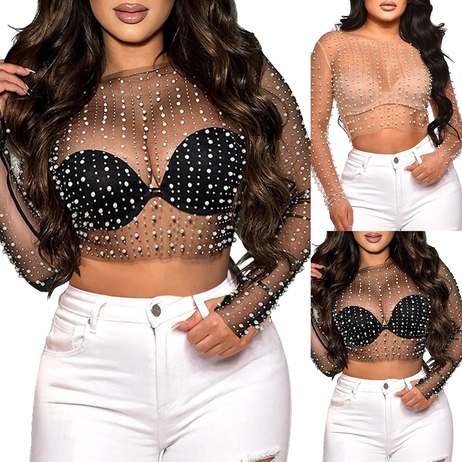FEATURE: See through bodysuit, Long sleeves, Mock neckline, Designed with and rainbow rhinestones over sheer mesh fabric, Stretchy, Bodycon fit, show your curvaceous silhouette and unexpected sexiness to your everyday look
